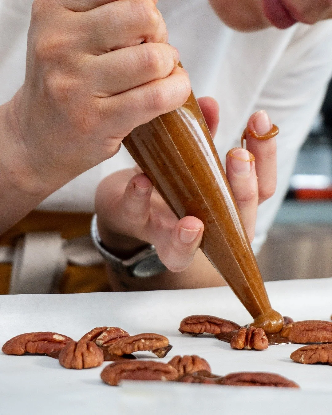 Handmade chocolate is crafted in limited batches with hands-on attention at every stage — from tempering to molding to finishing.
